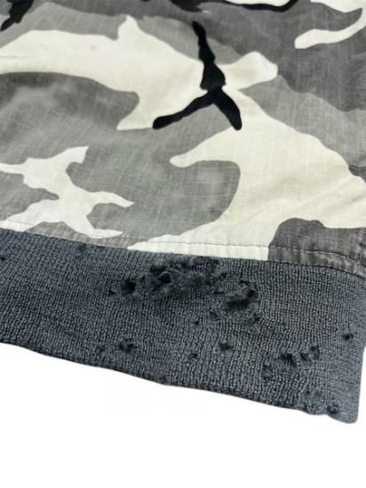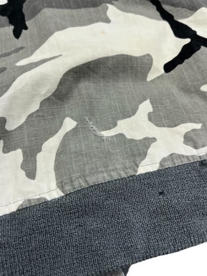 全体的に使用感があり、ダメージも多々ございます。裾あたりに破れ、リブに穴多数、生地やライナーに色移りなど汚れもありますが、雰囲気は良く、古着慣れしている方なら着ていただけるコンディションです。